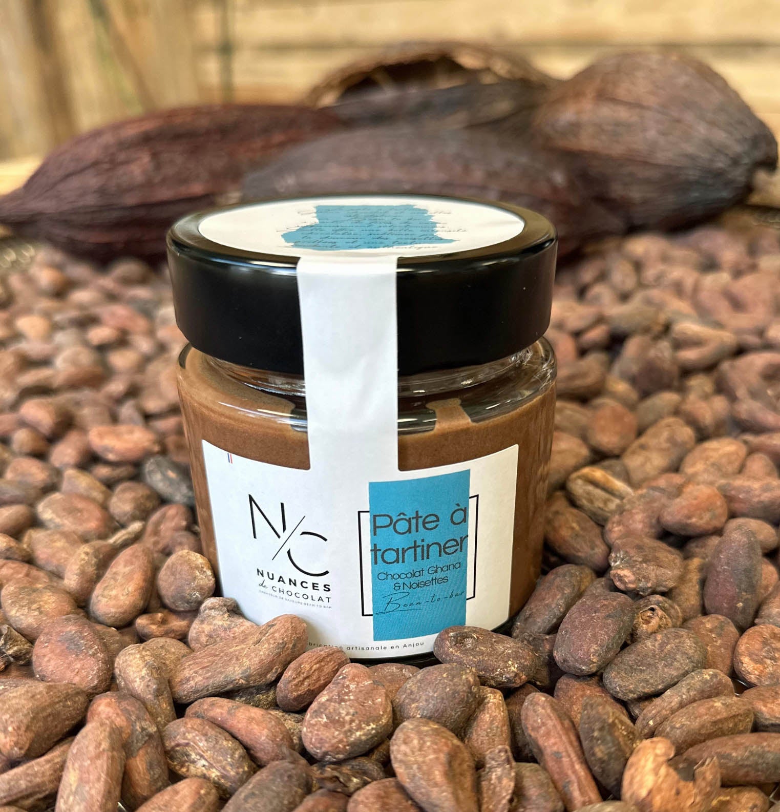 Savourez notre pâte à tartiner artisanale sans huile ajoutée, élaborée avec du chocolat du Ghana Bean-to-bar, des noisettes sélectionnées, du lait entier bio et du sucre blond bio. Onctueuse, riche en cacao et 100 % naturelle, elle ne contient ni additifs ni conservateurs. Parfaite pour tartiner au petit-déjeuner, au goûter ou pour agrémenter vos desserts.